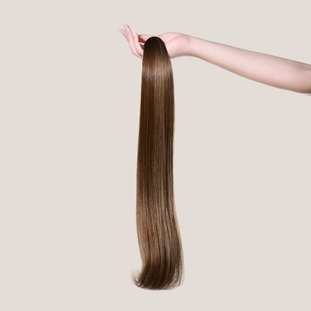 Our signature technique, where precision-applied silicone beads create a secure foundation. Wefts of hair are then seamlessly placed for a comfortable, natural-looking result with exceptional length and volume.